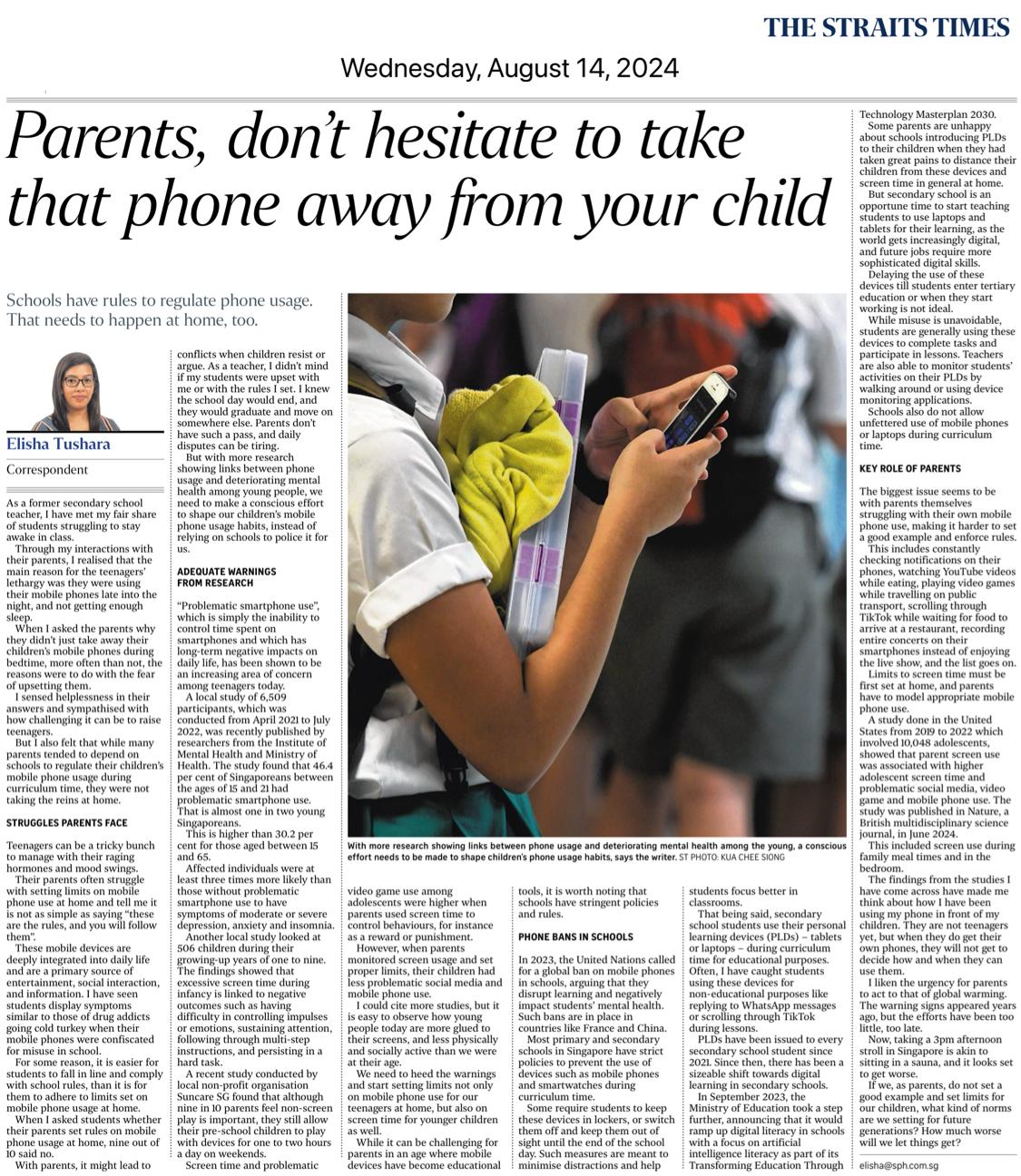 Parents, don’t hesitate to take that phone away from your child (The Straits Times, 14 Aug 2024)